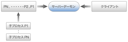 次に親サーバー・デーモンはクライアントからの要求を受け取るや否や、すべての子プロセスに