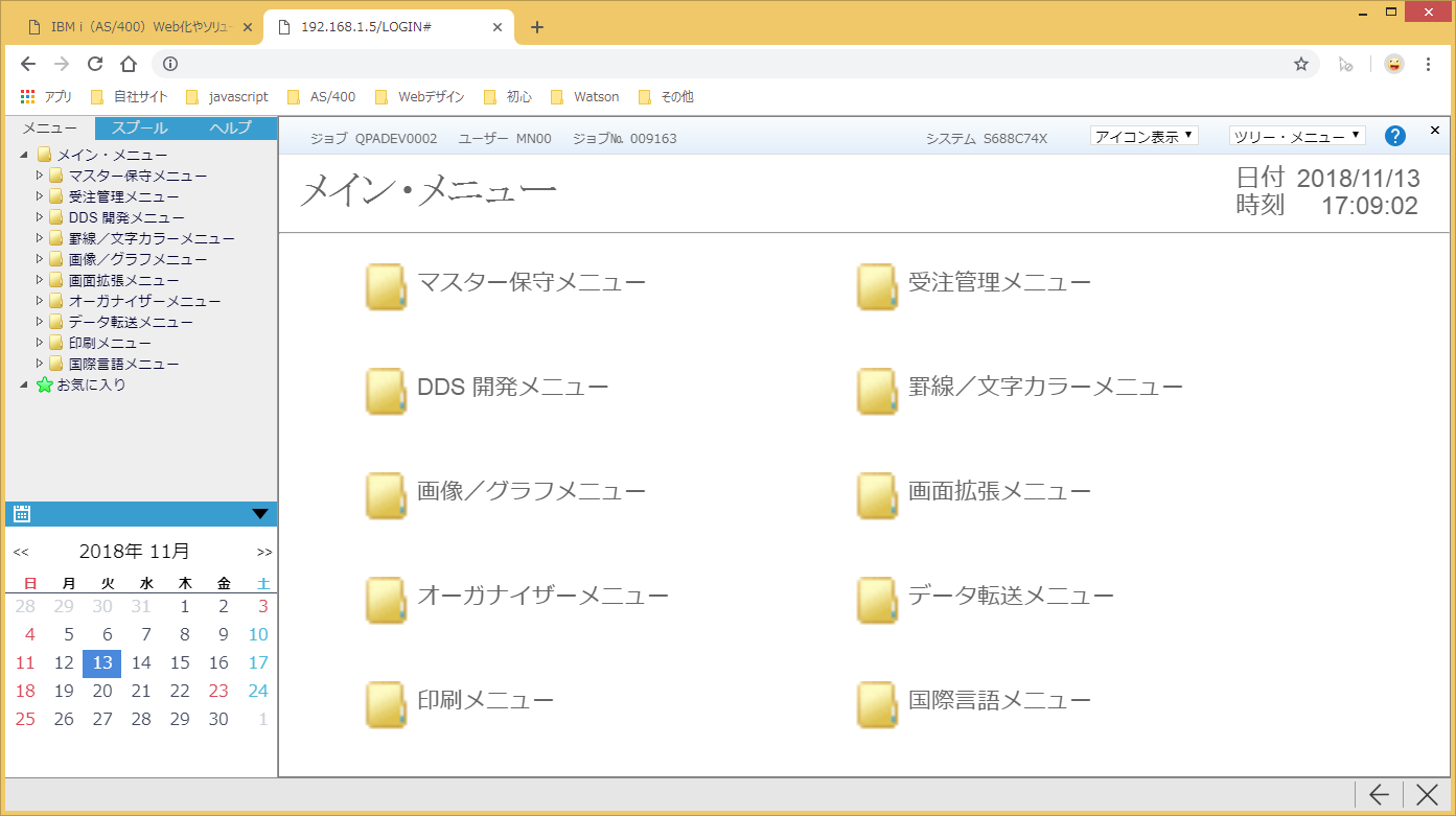 AutoWeb のメニューは IBM i のメニューをツリー・ビューとして表示することができる。