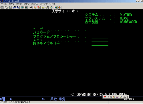 5250 エミュレーターに良く似たサイン・オン画面による仮想ログインのサンプルを
