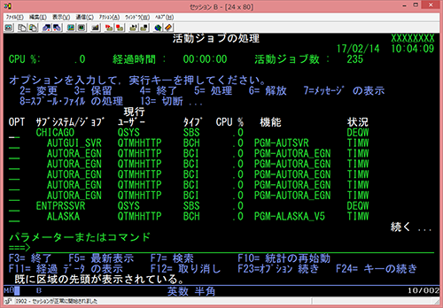 このプログラムが実行された後のジョブを WRKACTJOB で参照すると