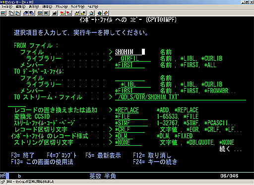 CPYTOIMPF FROMFILE(QTRFIL/SHOHIN) TOSTMF('/QDLS/QTR/SHOHIN.TXT')