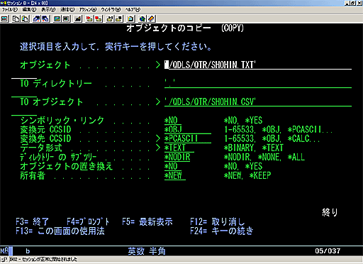 COPY OBJ('/QDLS/QTR/SHOHIN.TXT') TOOBJ('/QDLS/QTR/SHOHIN.CSV')