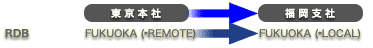 福岡支社の*LOCAL RDB の名前に対して東京では同じ名前のRDB を*REMOTE