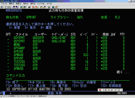 Spoolライター Ver 3.0 ではさらに WRKSAVSPLF コマンドを使ってWRKOUTQ の画面
