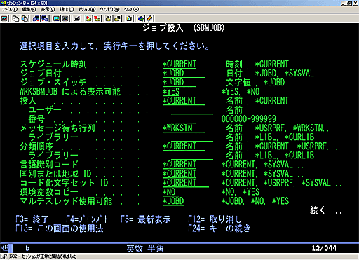 SBMJOB によって投入する前には、F10= 追加のパラメーター によって次のように