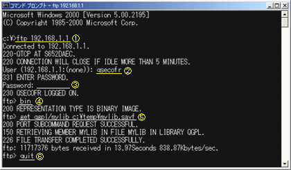 ⑥ | ・・・ | quit コマンドで Ftp を終了します。
