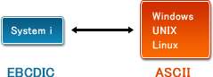 従って、System i ( EBCDIC ) <--> Windows,UNIX ,Linux ( ASCII ) の変換は