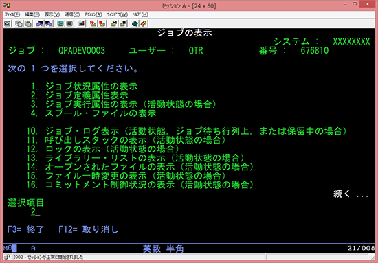 この中から「2. ジョブ定義属性表示 」を選択すると