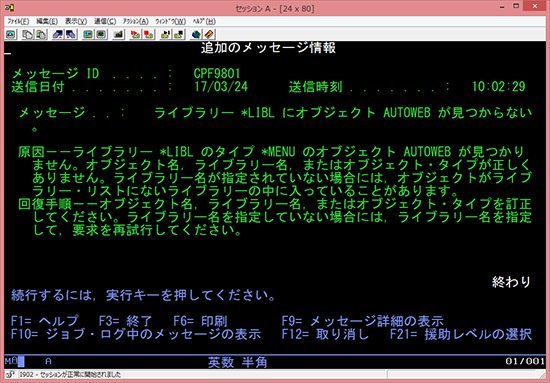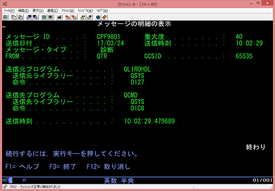 IBM i でのメッセージはかなり詳細なメッセージであるので
