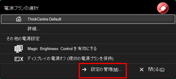 Shift + ESC キーを押すと次のような Lenovo の省電力マネージャーが