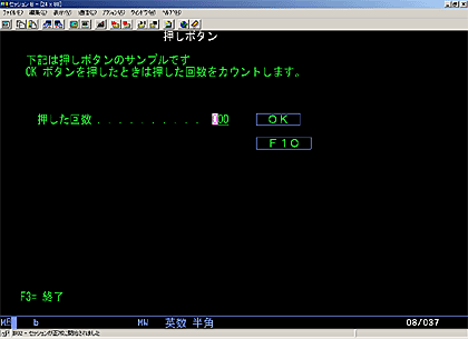 この DSPF画面でOKボタンをマウスの左ボタンで押すと、次々と数値がカウント・アップされる。