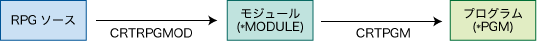 それでは従来、CRTRPGPGM ひとつだけで事足りたのに、何故、CRTRPGMOD + CRTPGM という、
