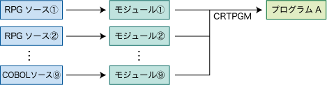 それは ILE では、一般的には複数のモジュールやサービス・プログラムから、ひとつのプログラムが