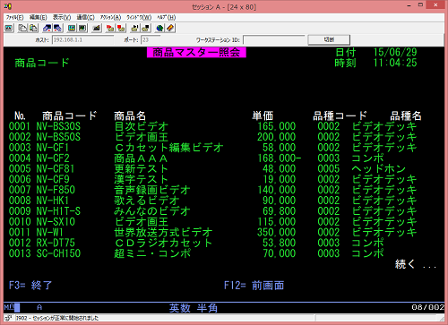 次は TONAKAI のサンプルとして使われているSMP006:商品マスターの照会画面である。