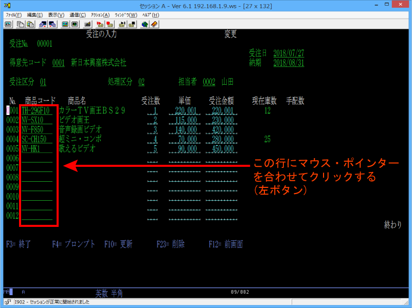 0017.00 A HLPTITLE(' 受注の入力 ')