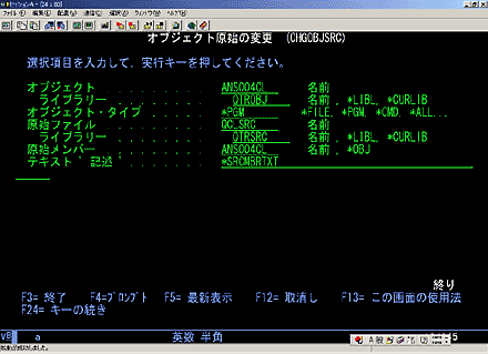 CHGOBJSRC の実行の様子