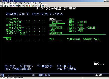 CRTMIPGM コマンド入力