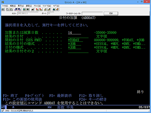 0024.00 '*YMD' '*JUL' '*JOB') PROMPT(' 日付の様式 ')