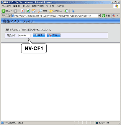 HTML画面が表示されたら、上記のように商品コードの欄に 「NV-CF1」 と英大文字を使って打鍵して