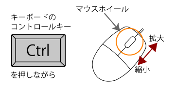 そんな時は、Ctrl キーを押しながら、マウスのホイールを転がすことで、