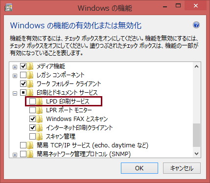 このように 「LPD印刷サービス」が表示されるのでチェックを入れてOKボタンを押して終了すると、