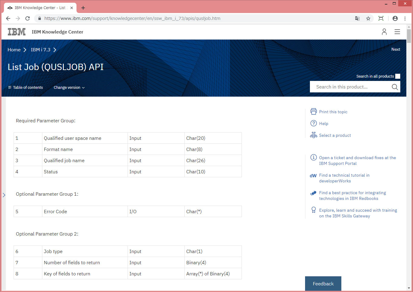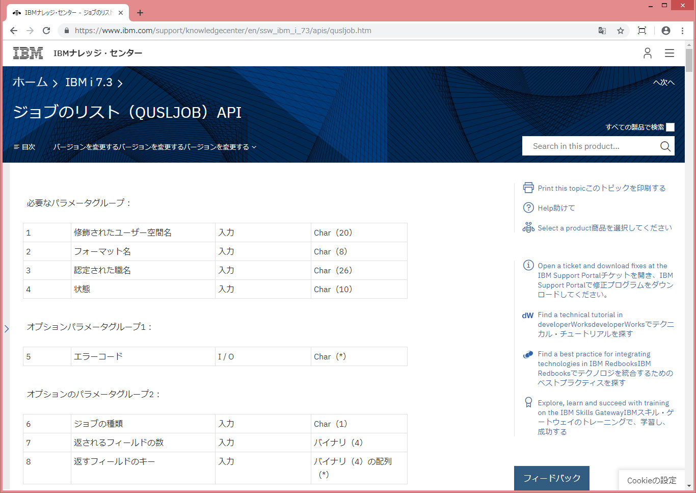 IBM i の API 解説はずいぶん以前から英文のみの表示となっている。