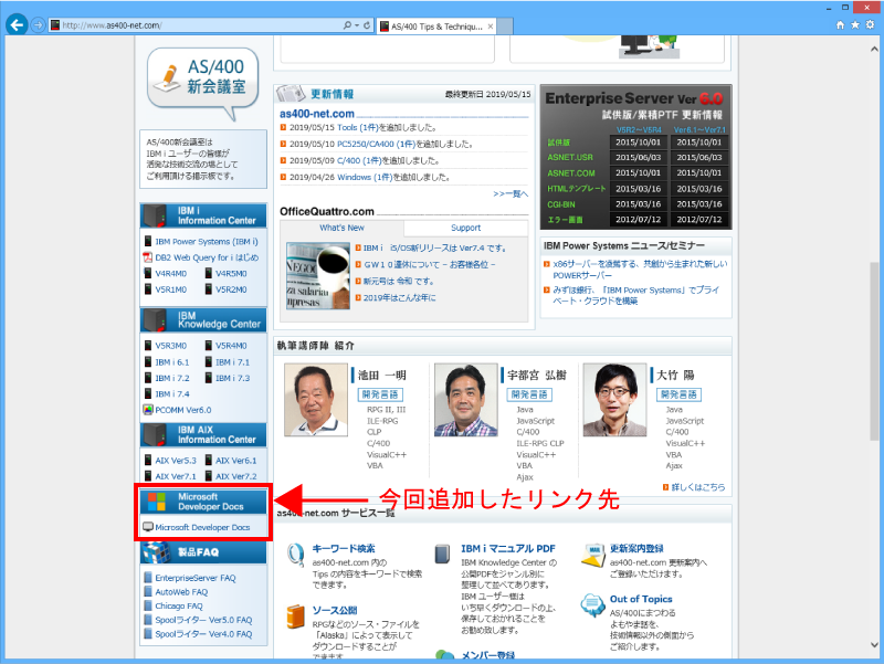 私達 IBM の開発者にとっては IBM Knowledge Center は IBM i のマニュアルとして