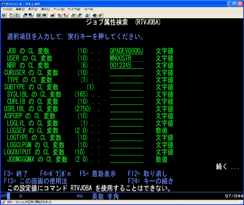 RTVJOBA : ジョブ情報の検索は自分のジョブしか検索することができない