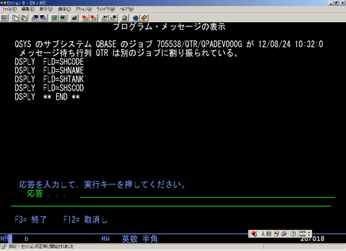 によって QTRFIL/SHOHIN のフィールド一覧をユーザー・スペース: QTEMP/USLFLD に出力する。