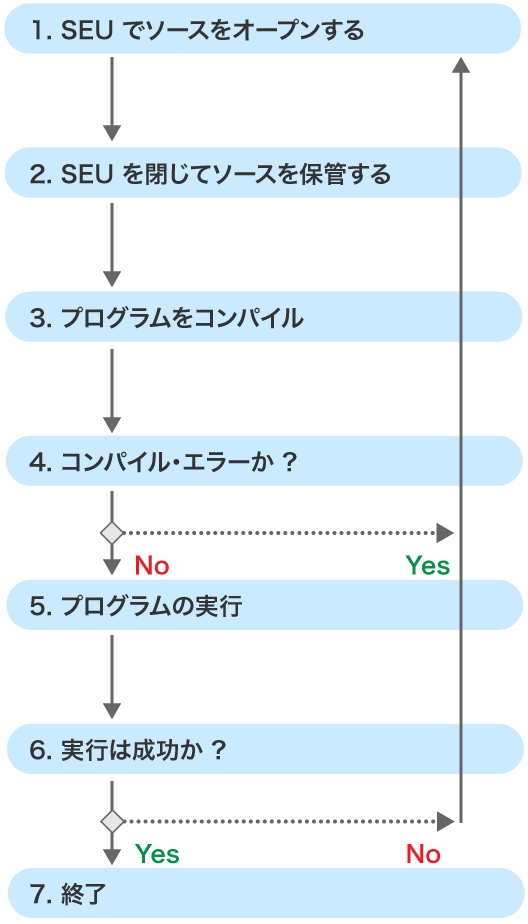 SEU のコマンド: SAVE を入力すれば SEU を終了せずにソースを保管することができる。