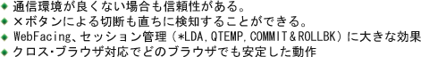 通信が持続することの利点は速さだけではない。 ユーザーがブラウザを閉じたことも容易にサーバー側では検出することができるのである。今まで「戻るボタン問題」などで問題視されていたことは、容易にしかも確実に検出できるようになる。