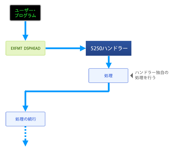 このハンドラー・プログラムが元のプログラムに代わって EXFMT に相当する処理を実行できることになる。