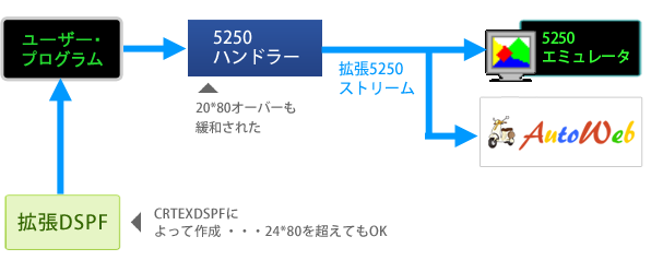 自分で5250ストリームを生成すれば、そこには24*80の制限は、もはやなくなるのである。