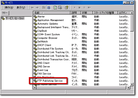 Win2000サーバーであれば「FTP Publishing Service」というFTPサーバーが表示されて