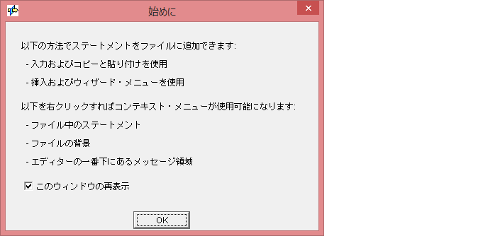 「始めに」というダイアログは無視してOKボタンを押す。