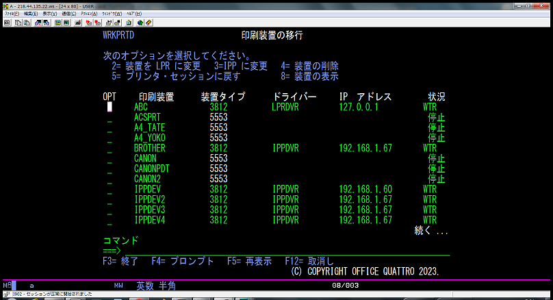 [ WRKPTD: プリンタ・セッションの廃止 ]