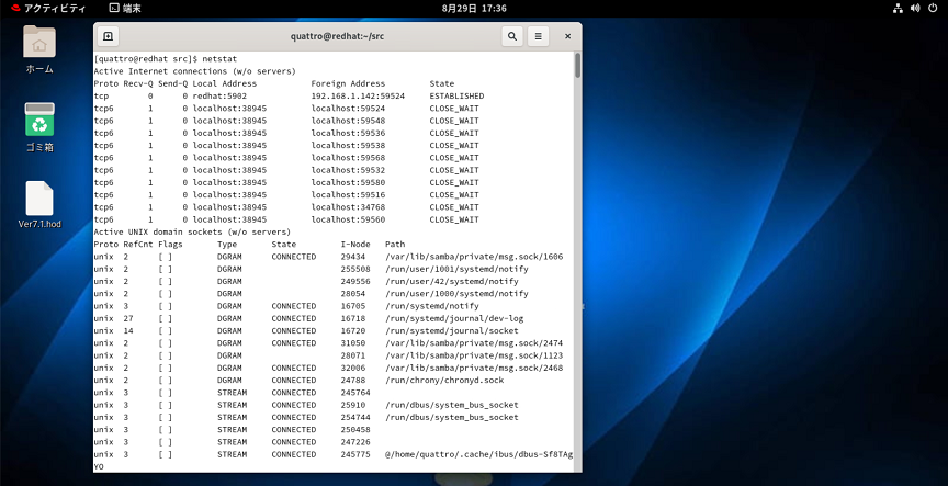 またLinux上でも NETSTAT も次のように有効に機能する。
