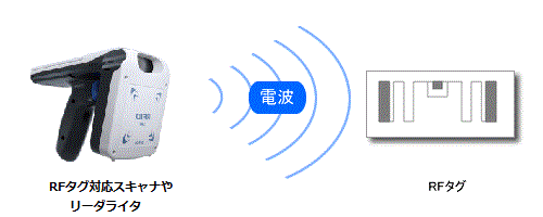 無線でICタグからの発する電波を読取る仕組みのことです。