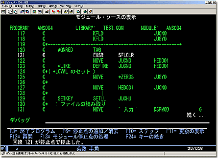 ここでディバッグ欄に例えば 「FIND 1200」 と打鍵して実行キーを押すとステートメント番号 1200 行から