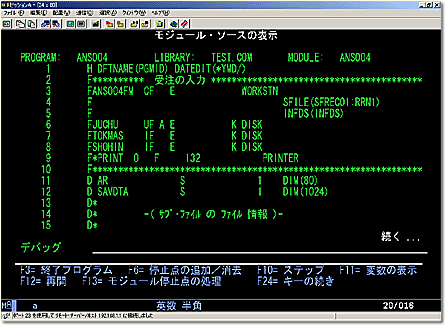ILE-RPG では対話式ソース・ディバッグを行うことができる。
