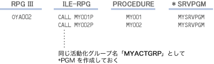 これに対して RPG III では CALL 命令しか使えないので、原理的にはサービス・プログラム