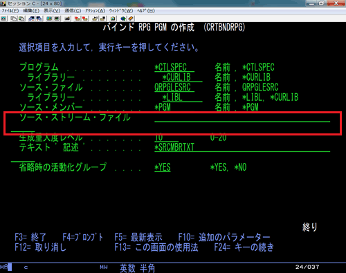 RPGコンパイラー・コマンドでストリーム・ファイルをソースに指定する