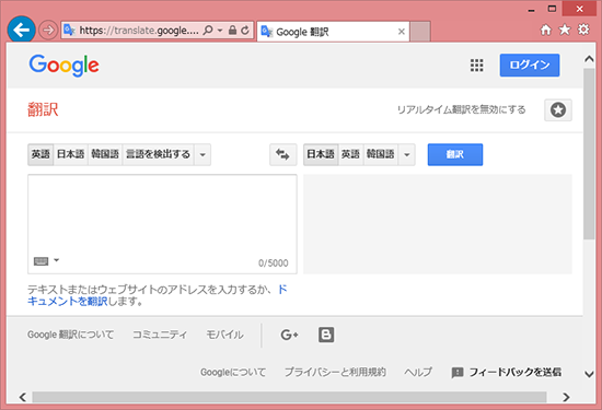 最初に Google翻訳 ( https://translate.google.co.jp/?hl=ja ) を起動してみよう。