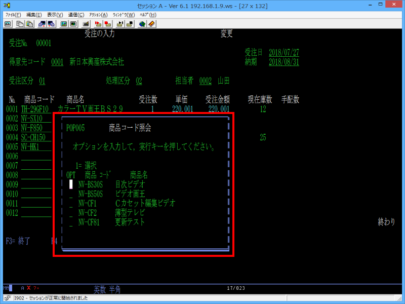0017.00 A HLPTITLE(' 受注の入力 ')