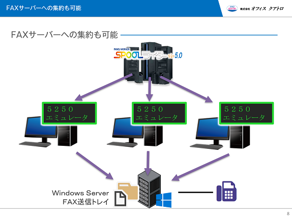 WindowsサーバーのFAXトレイに転送してFAXさせることもできます。