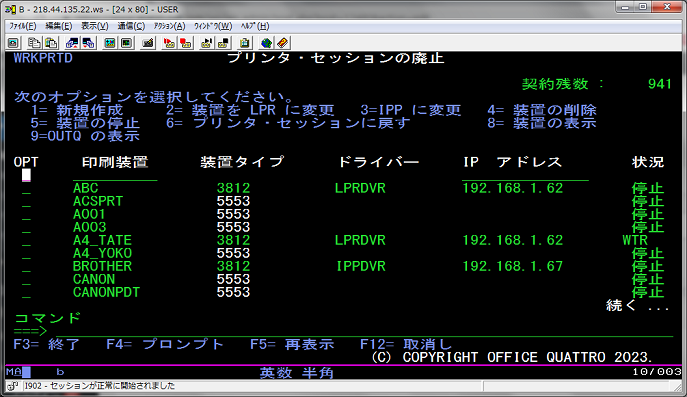 WRKPRTDでは社内のすべての印刷装置をこのように表示して