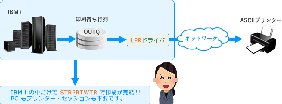 IBM iのLPRコマンドは IBM iでもLPRが使えるということを示しているに過ぎません。