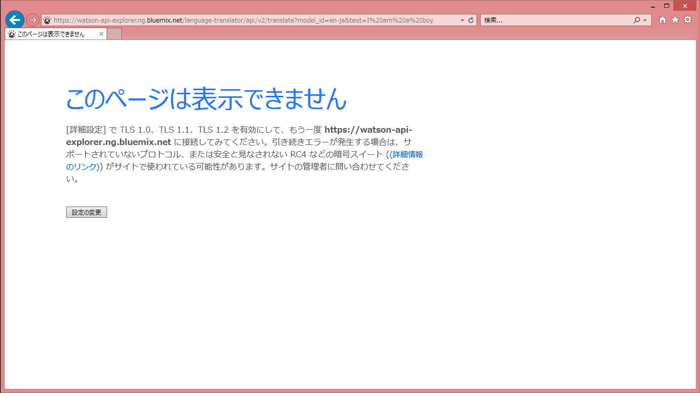 そこで SSL 2.0 や 3.0 のチェックをはずして Watson にアクセスしても