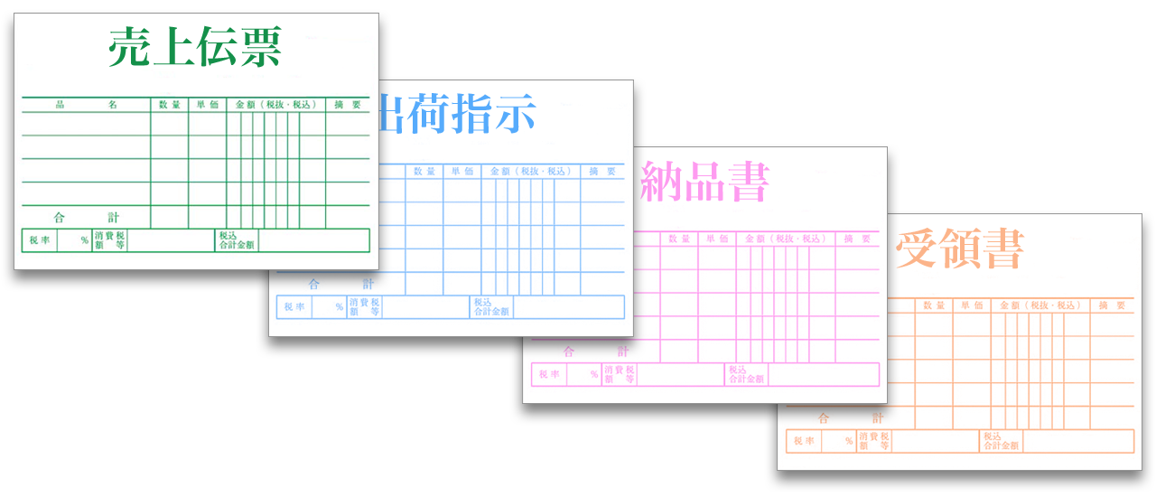 売上伝票の出力が次のように複写用紙で出力されていたとする。