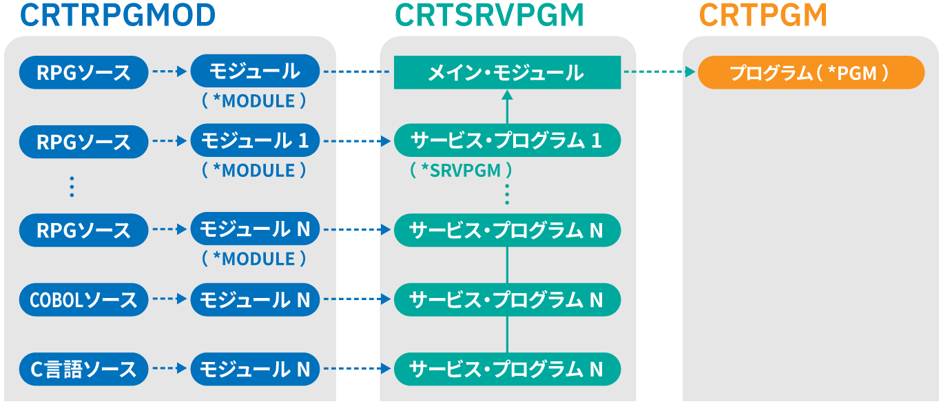 前述ではメイン・モジュール( *MODULE )にサービス・プログラム( *SRVGM )を